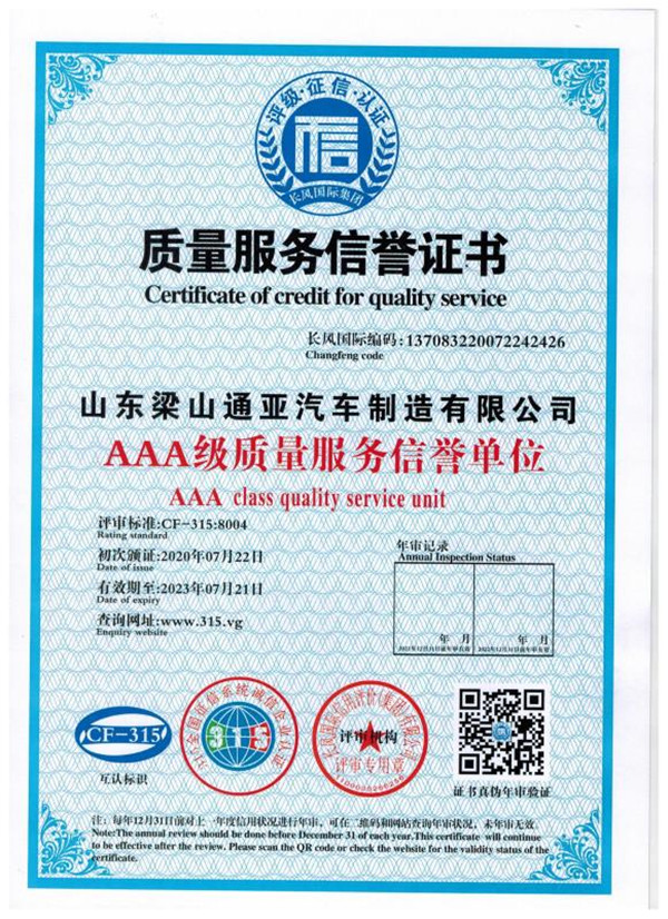 质量服务信誉证书
