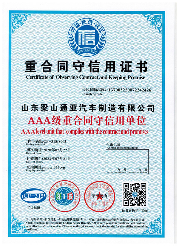 重合同守信用证书
